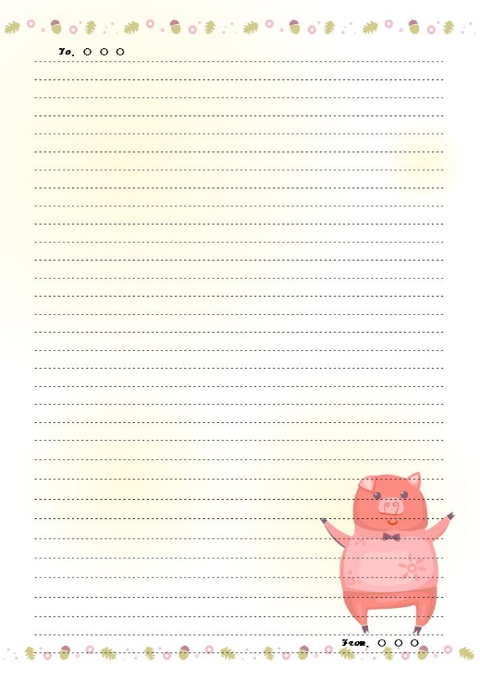 귀여운 돼지 그림이 그려져 있는 편지지 양식입니다.