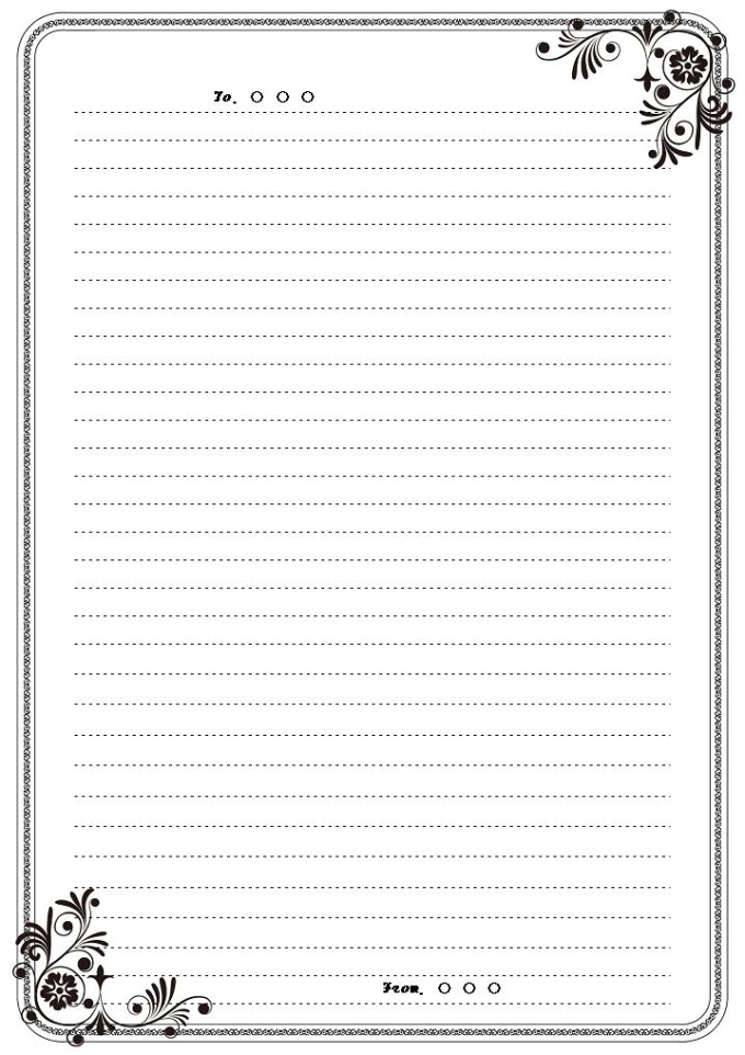 편지지(검은색 꽃과 테두리)(밑줄)
