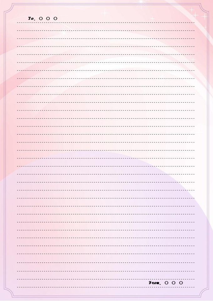 9,000원/월분홍과 보라색의 반원이 아래 위로 그려져 있는 편지지 양식입니다.