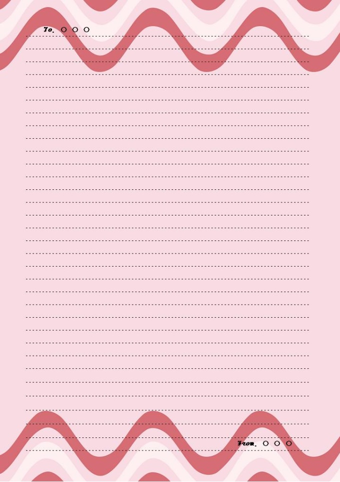 붉은색의 물결 이미지가 그려져 있는 편지지 양식입니다.