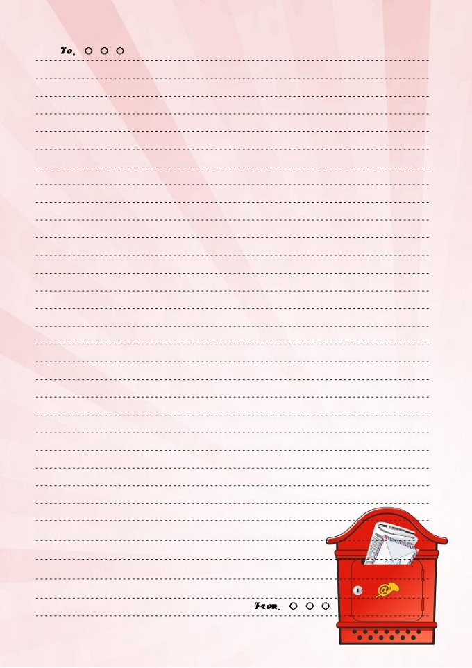 9,000원/월빨간색의 우체통 이미지가 그려져 있는 편지지 양식입니다.