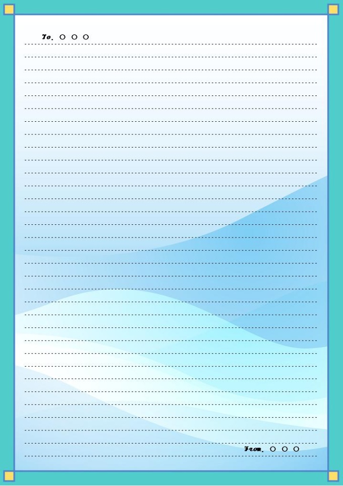하늘색의 디자인이 배경으로 구성된 편지지 양식입니다.