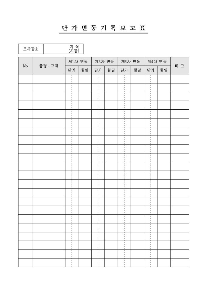단가변동기록 보고표
