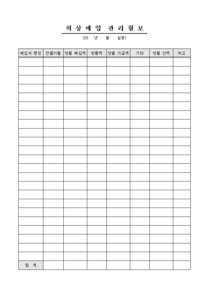 외상매입 관리월보