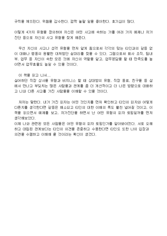 ‘생각의 피자’란 책은 자신과 타인의 갈등 해소를 위한 도구라고 소개하며, 인간의 두뇌를 4부분으로 나누어 뇌의 각각의 영역이 어떤 일을 하는지를 설명하고 있다
