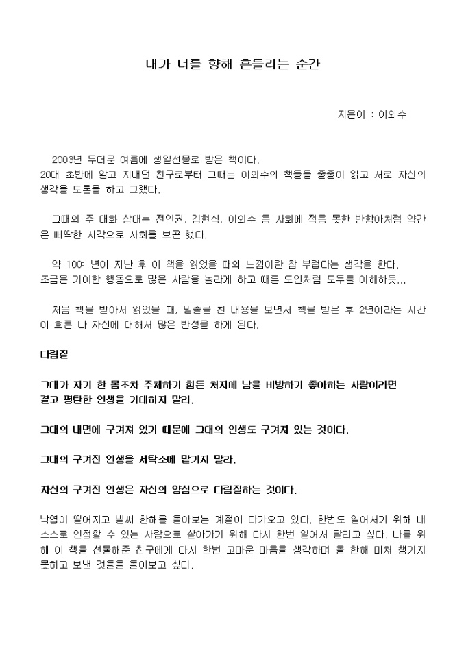그대가 자기 한 몸조차 주체하기 힘든 처지에 남을 비방하기 좋아하는 사람이라면 결코 평탄한 인생을 기대하지 말라.