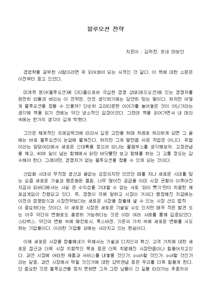 미개척 분야(블루오션)에 다다름으로써 극심한 경쟁 상태(레드오션)에 있는 경쟁자를 완전히 따돌려 버리는 이 전략은, 언뜻 생각하기에는 당연히 맞는 말이다. 하지만 어떻게 블루오션을 찾을 수 있을까?