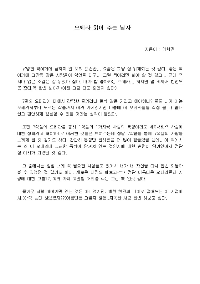 [독후감]오페라 읽어 주는 남자_김학민 지음