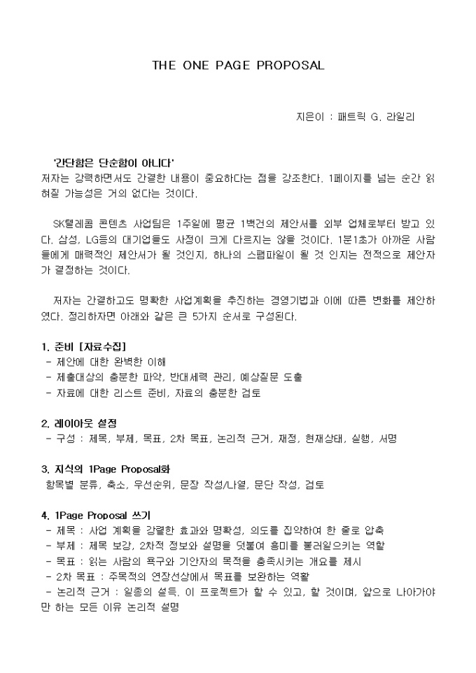[독후감]3_THE ONE PAGE PROPOSAL_패트릭 G. 라일리 지음