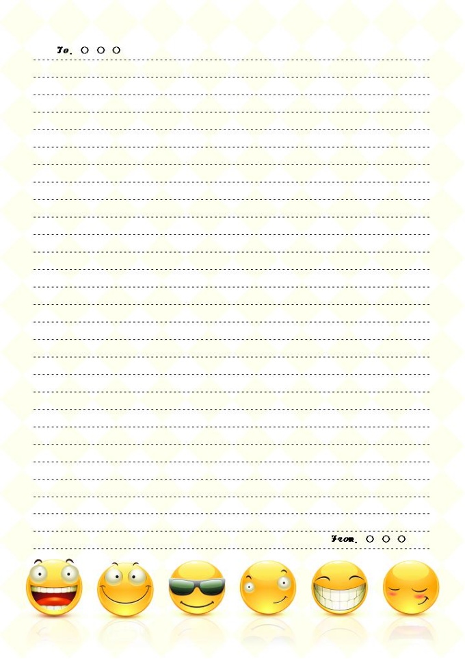 9,000원/월노락색의 동그란 얼굴이 그려져있는 편지지 양식입니다.