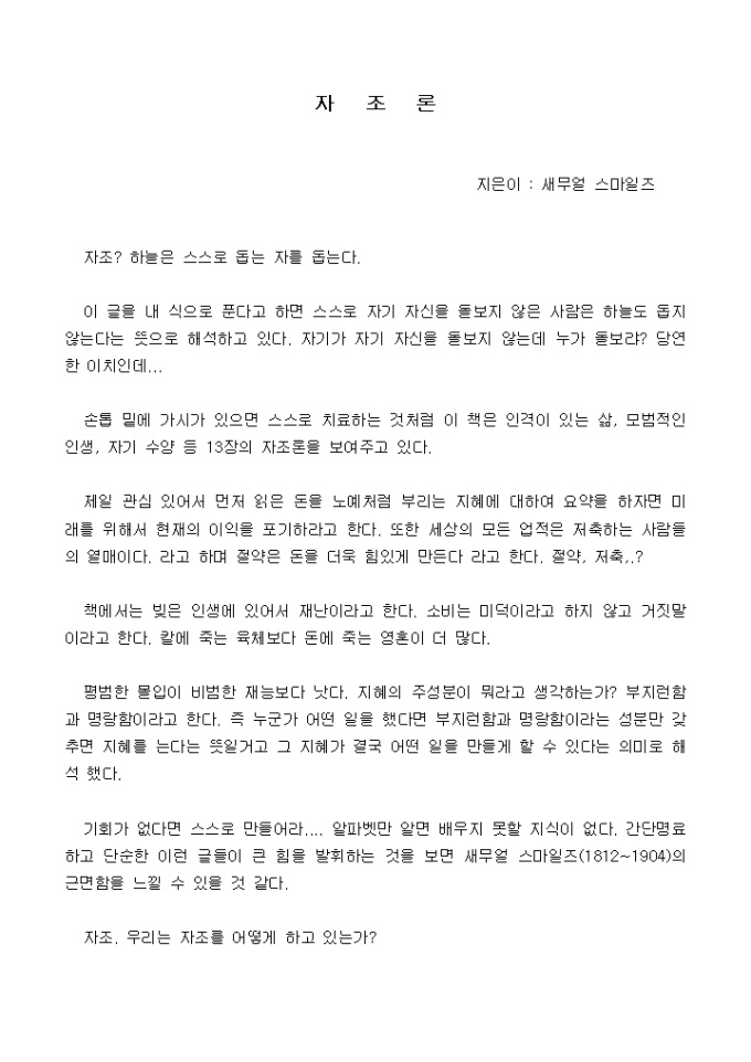 자조? 하늘은 스스로 돕는 자를 돕는다.