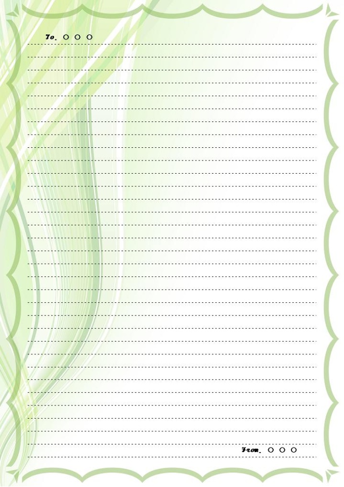 녹색의 세로 물결이 그려져있는 편지지 양식입니다.