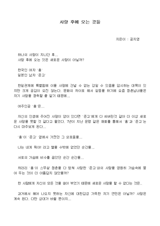 [독후감]사랑 후에 오는 것들_공지영 지음