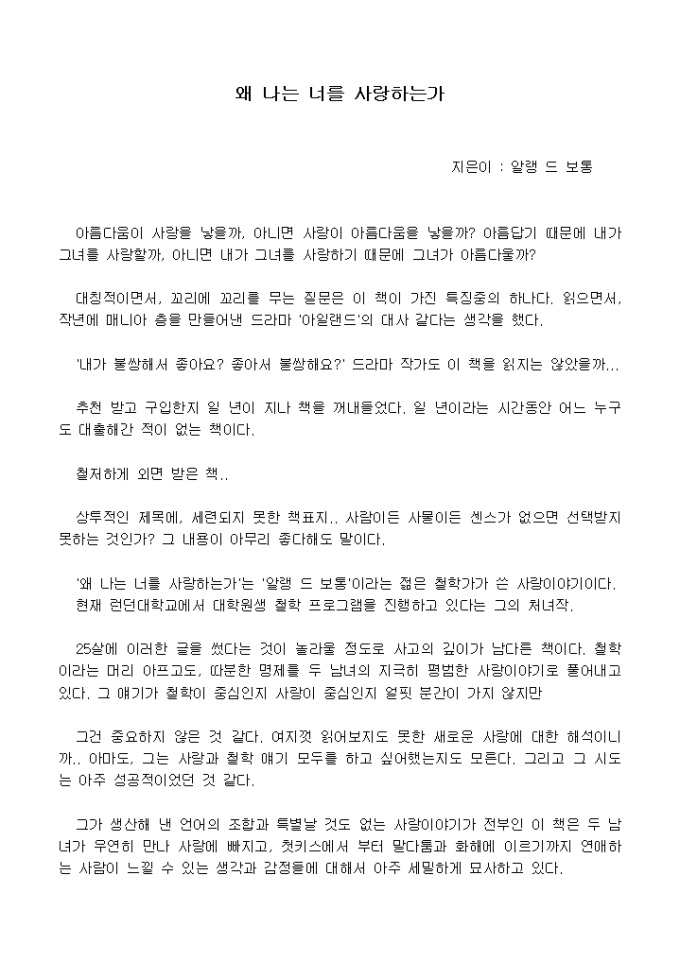 [독후감]왜 나는 너를 사랑하는가_알랭 드 보통 지음