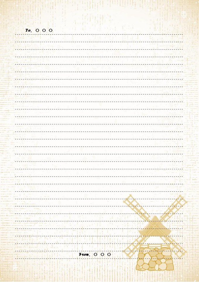 9,000원/월베이지색의 테두리와 풍차 이미지가 그려져있는 편지지 양식입니다.