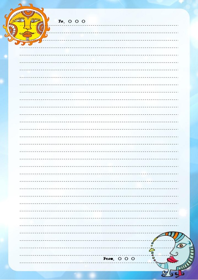 9,000원/월해와 달 이미지가 그려져있는 편지지 양식입니다.