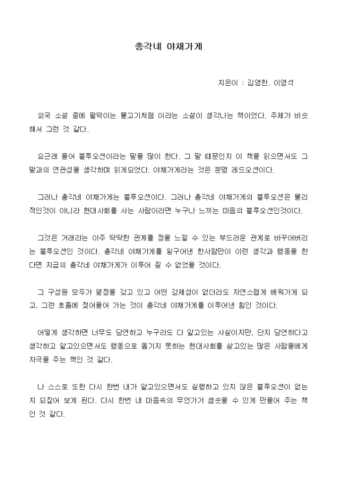 [독후감]2_총각네 야채가게_김영한, 이영석 지음
