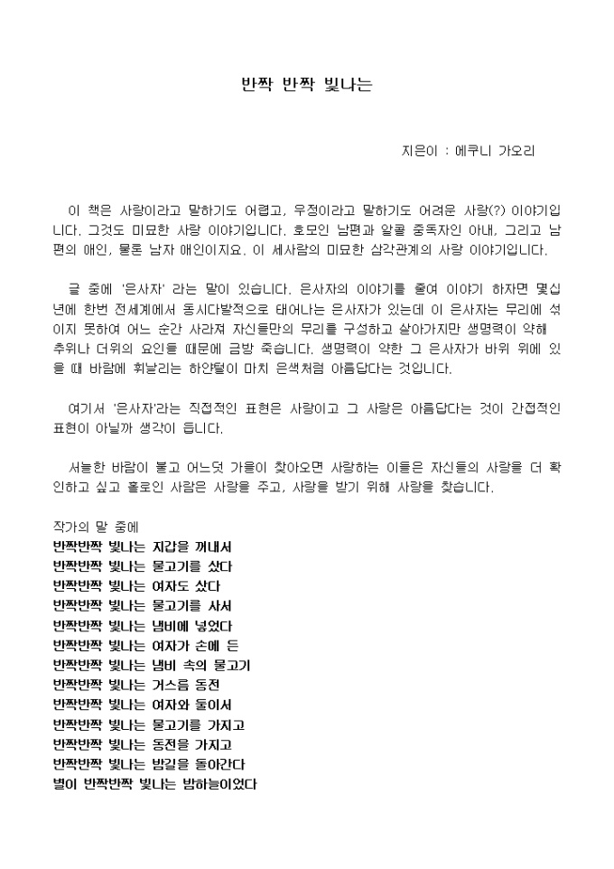 [독후감]4_반짝 반짝 빛나는_에쿠니 가오리 지음
