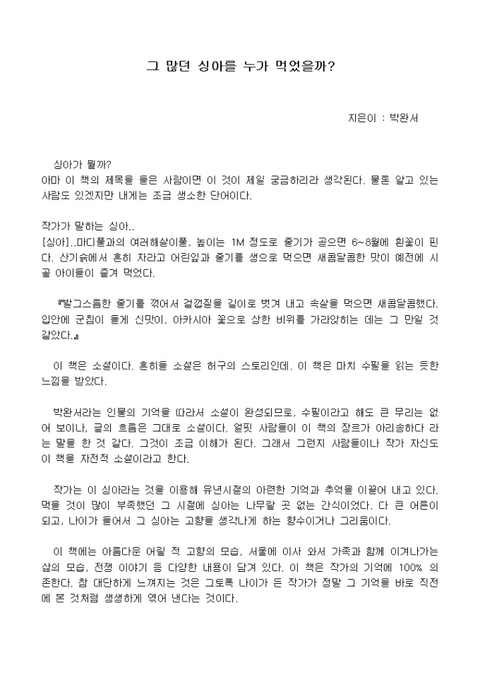 [독후감]그 많던 싱아를 누가 먹었을까_박완선 지음