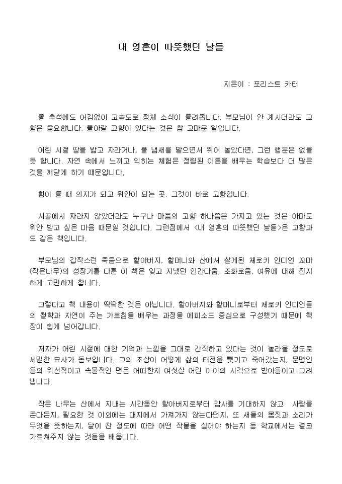 어린 시절 땅을 밟고 자라거나, 풀 냄새를 맡으면서 뛰어 놀았다면, 그런 행운은 없을 듯 합니다. 자연 속에서 느끼고 익히는 체험은 정립된 이론을 배우는 학습보다 더 많은 것을 깨닫게 하기 때문입니다.