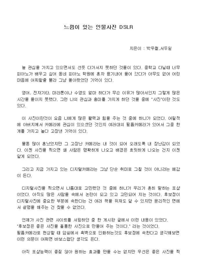[독후감]느낌이 있는 인물사진 DSLR_박우철, 서두일 지음