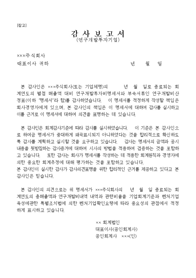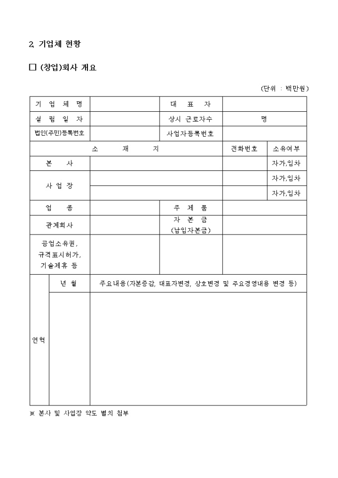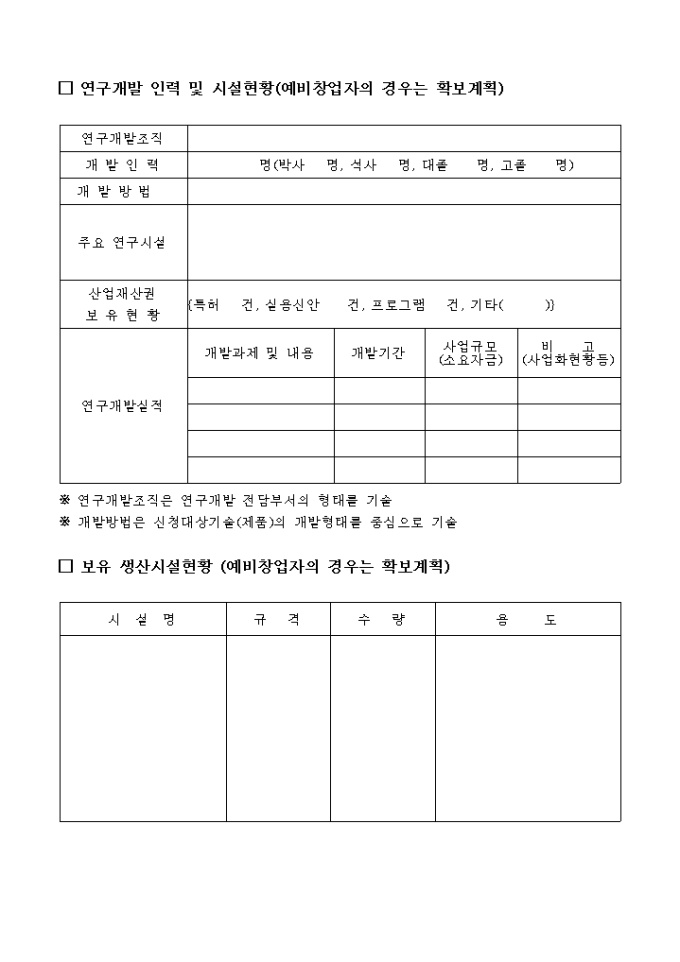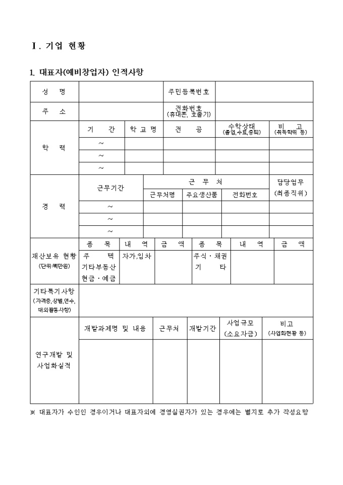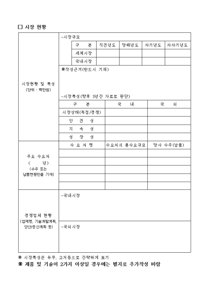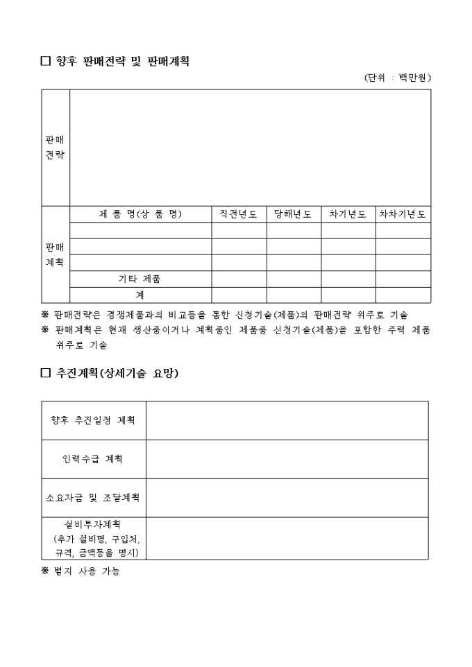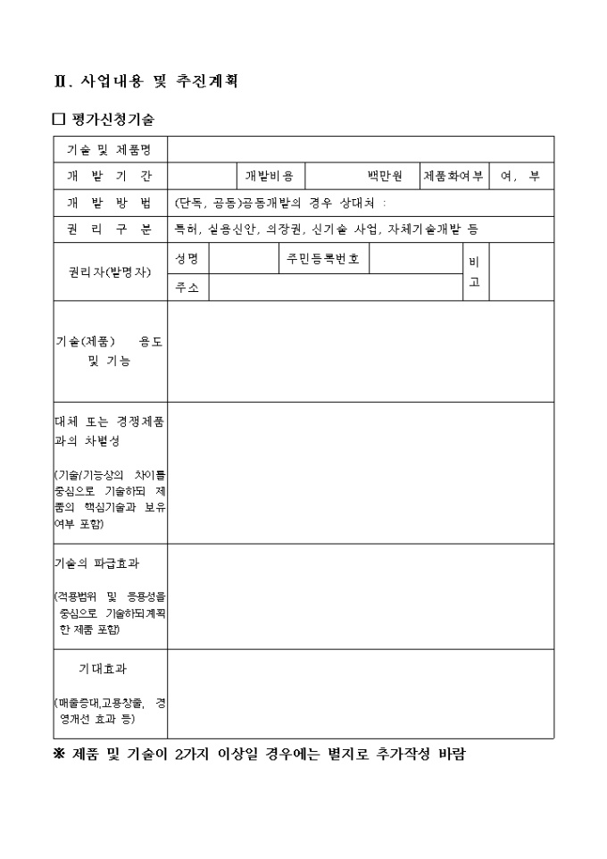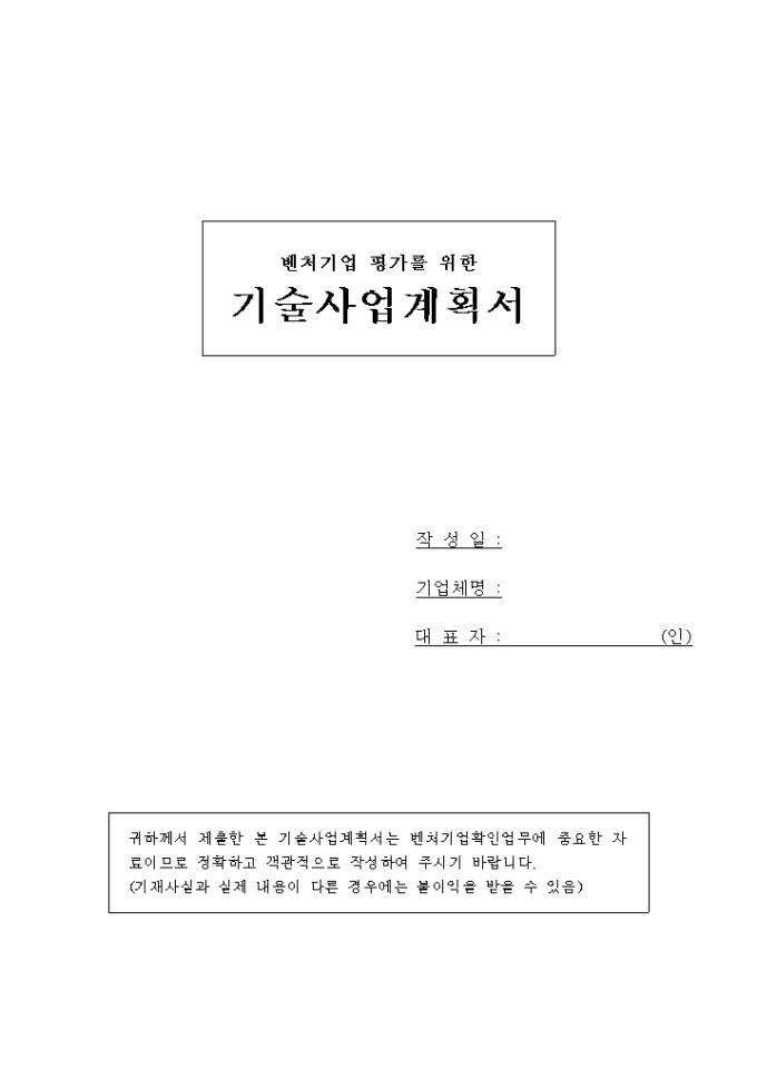 벤처기업평가를위한기술 사업계획서 양식