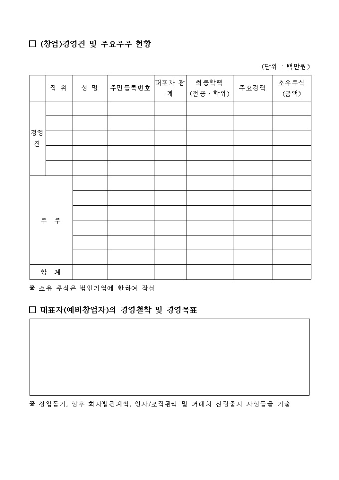 3. 예비창업자는 창업사업계획서을 중심으로 작성하여야 합니다.