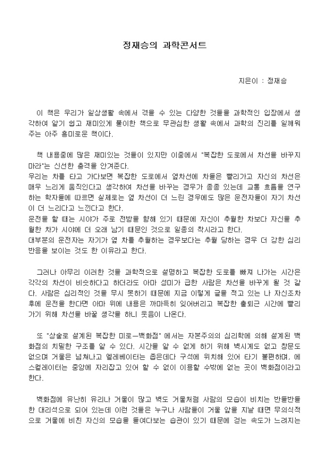 [독후감]정재승의 과학콘서트_정재승 지음