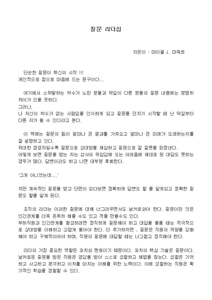 [독후감]질문 리더십_마이클 J. 마쿼트 지음