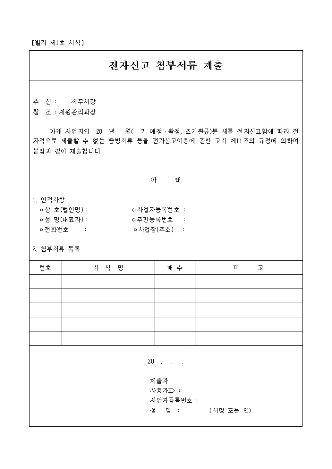9,000원/월세금을 전자신고할 때 필요한 첨부 서류를 제출할 때 필요한 양식입니다.