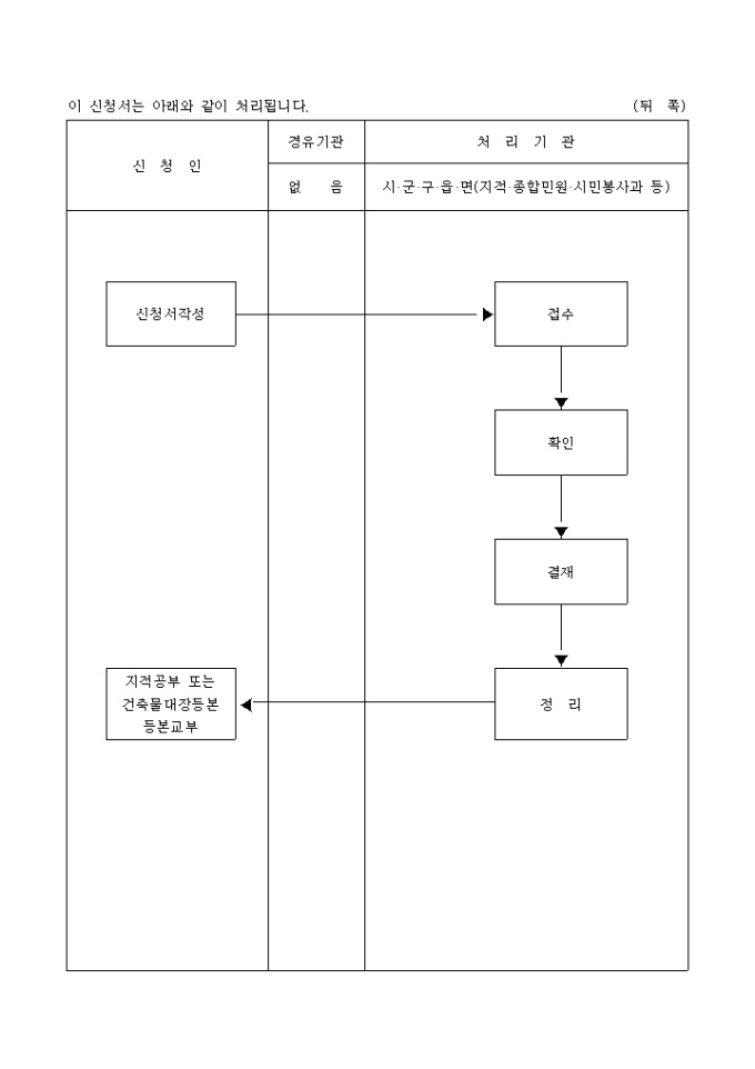 토지(임야 건축물) 대장에 등록된 위 부동산의 소유명의를 「부동산소유권 이전등기 등에 관한 특별조치법」 제6조 제1항 및 동법 시행령 제3조 제1항의 규정에 의하여 신청인의 명의로 변경(복구) 등록 신청 시 사용하는 양식입니다.