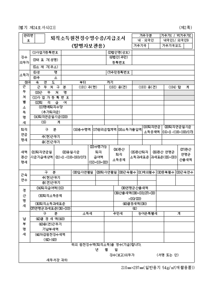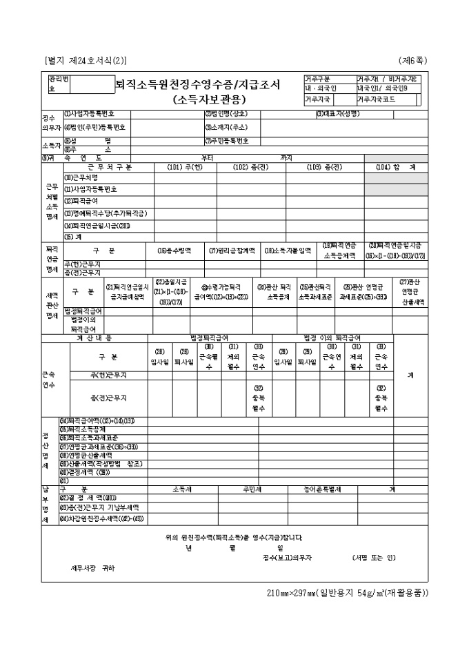 [2006년연말정산]퇴직소득원천징수영수증(지급조서)(06.04.10 개정)