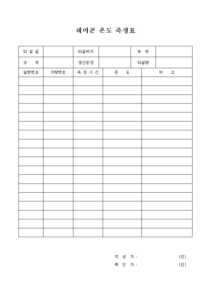 9,000원/월레미콘 온도를 시간대 별로 측정하여 관리하는 측정표 서식입니다.