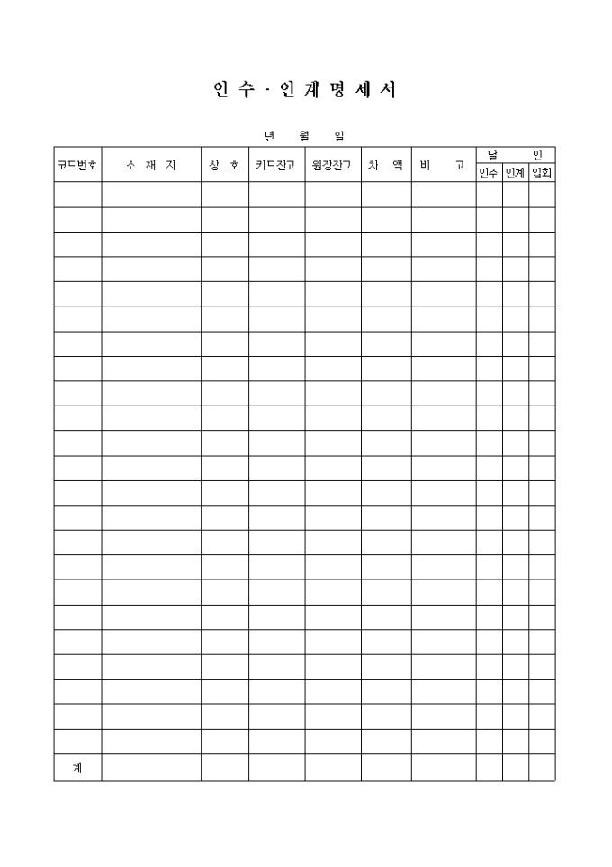 9,000원/월전임자와 후임자 사이에 업무의 인수.인계 내역을 기록하는 양식입니다. 카드잔고, 원장잔고,차액등의 내역을 기입하도록 되어 있습니다.