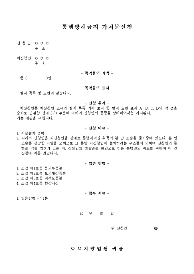 통행방해금지 가처분신청서