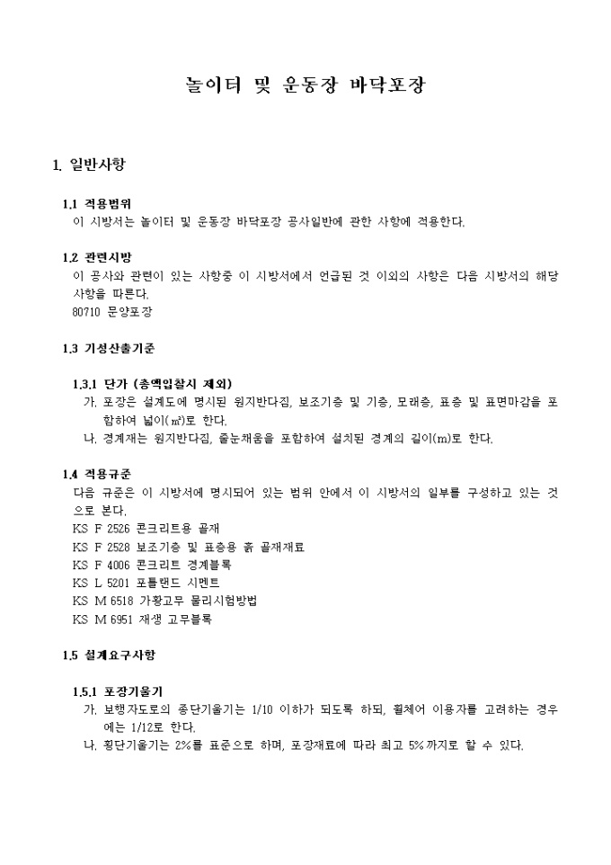 바닥포장 시방서(놀이터 및 운동장)