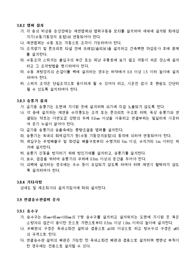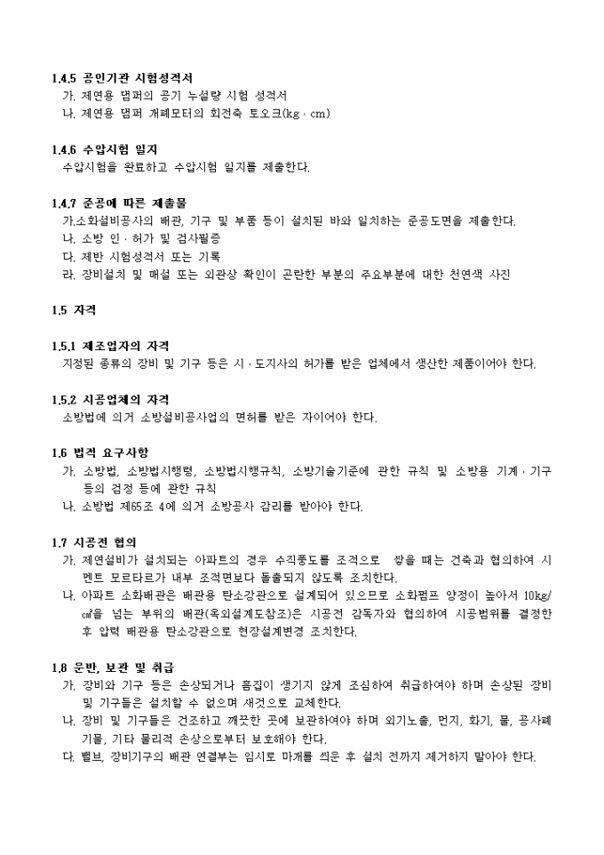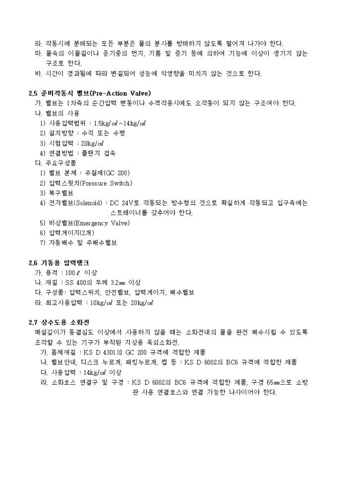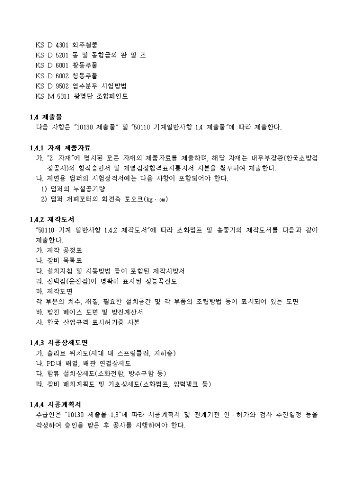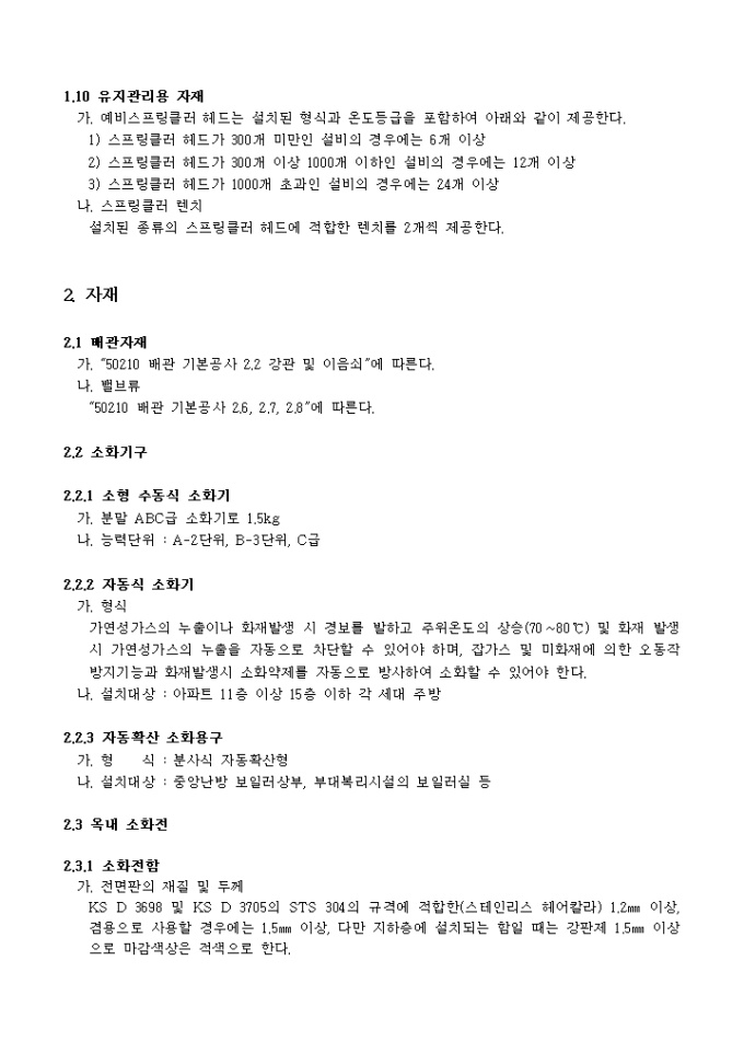 9,000원/월일반사항, 자재, 시공 등의 항목과 16장으로 작성되어있는 소화설비 시방서입니다.