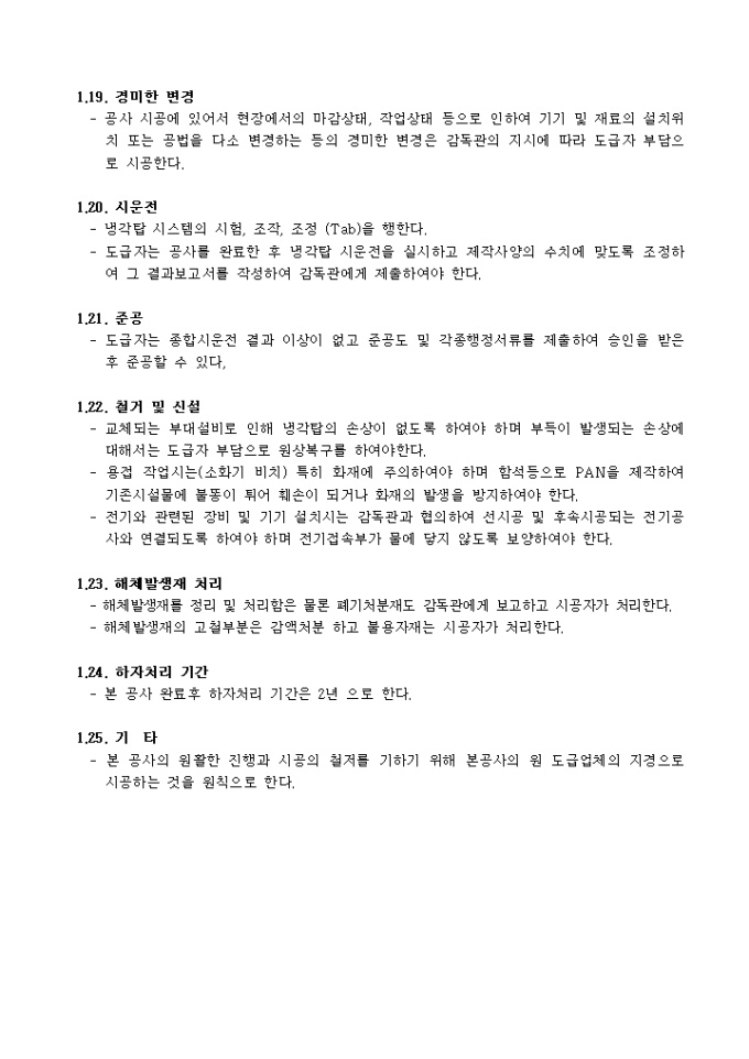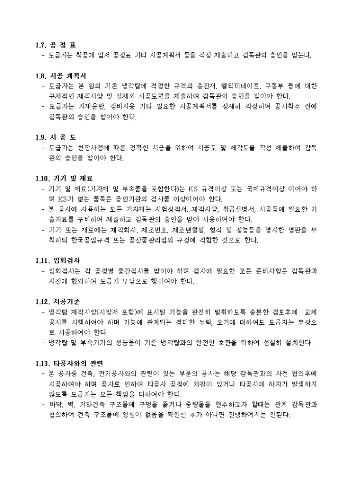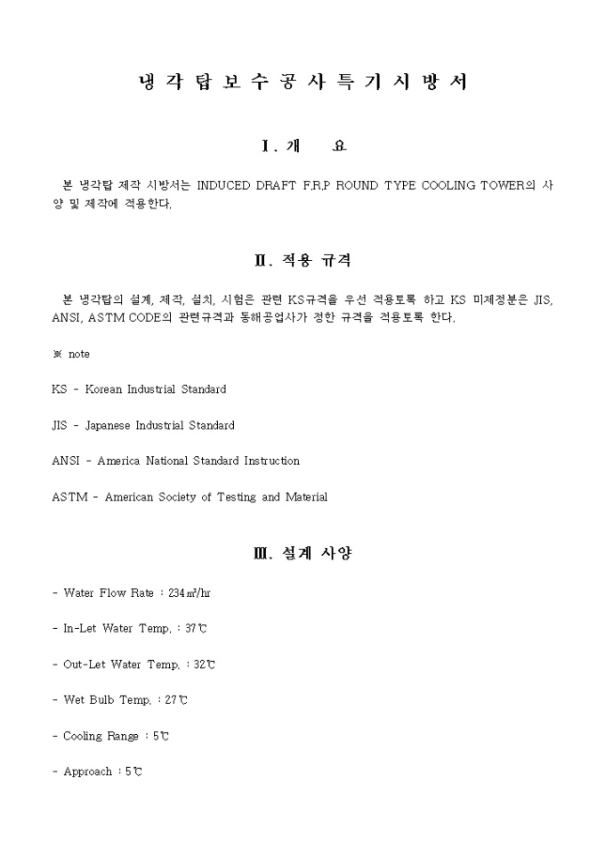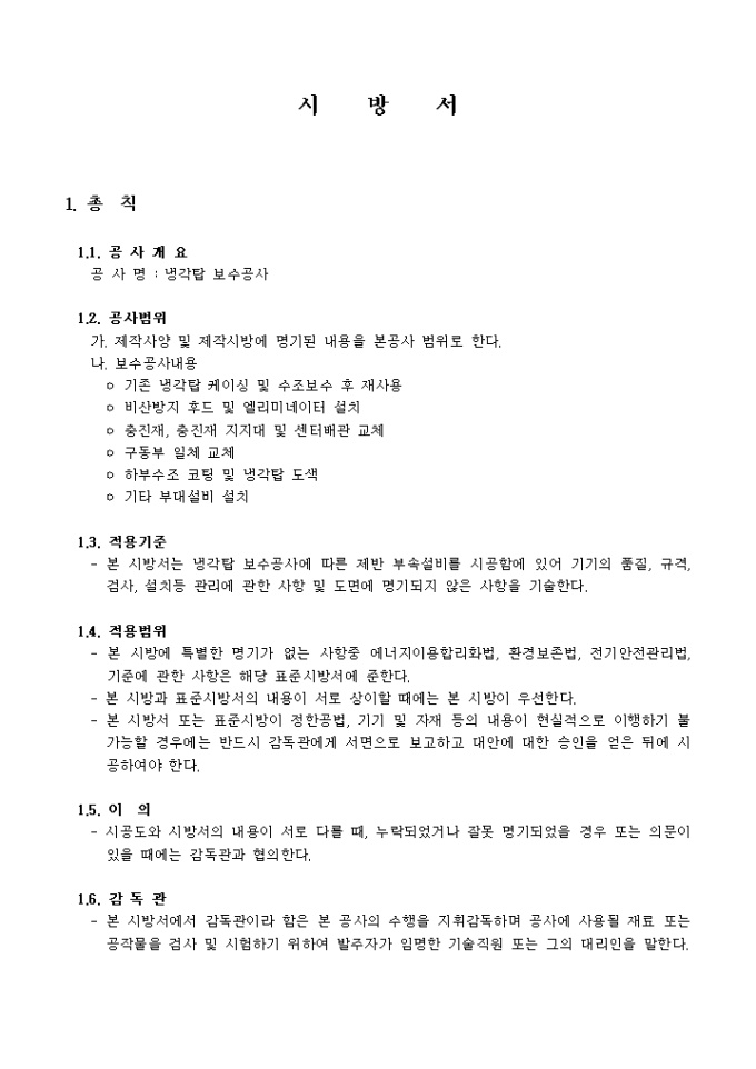 냉각탑 보수공사 시방서입니다.