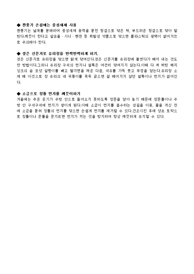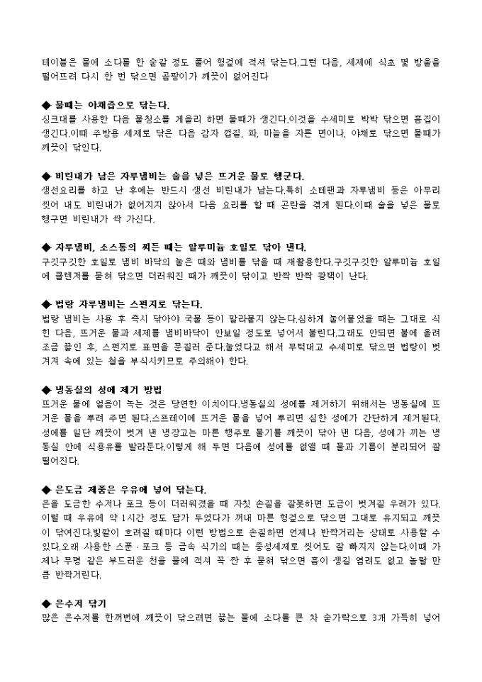 냉동실의 성에 제거 방법, 프라이팬 닦기 등 효율적인 주방기기 사용에 대한 노하우가 요약, 정리되어 있습니다.