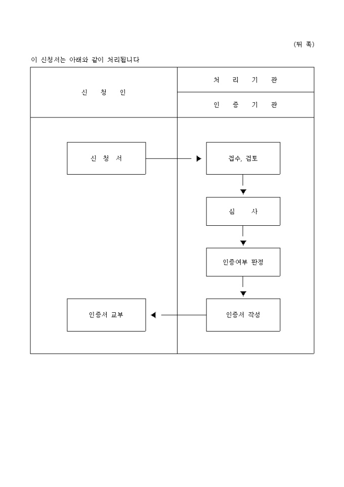 『농산물품질관리법』 제7조의 2 및 동법 시행규칙 제15조의 2의 규정에 의하여 우수농산물인증을 신청할 때 사용하는 우수종산물 인증신청서입니다.