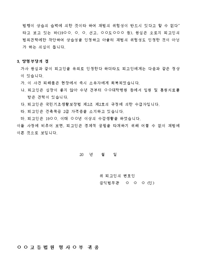 특정범죄가중처벌등에관한법률위반(절도) 항소 이유서 예제 양식입니다.