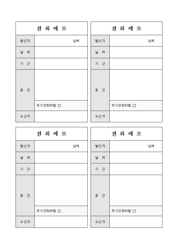 9,000원/월발신자, 날짜, 시간, 용건, 수신자의 항목으로 구성되어있는 전화메모장입니다.