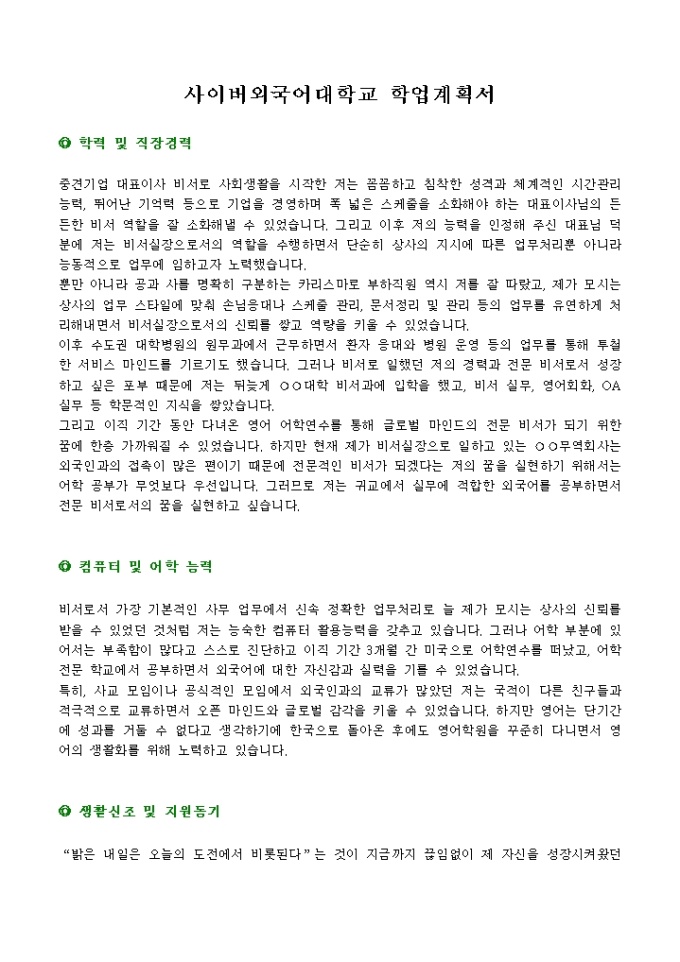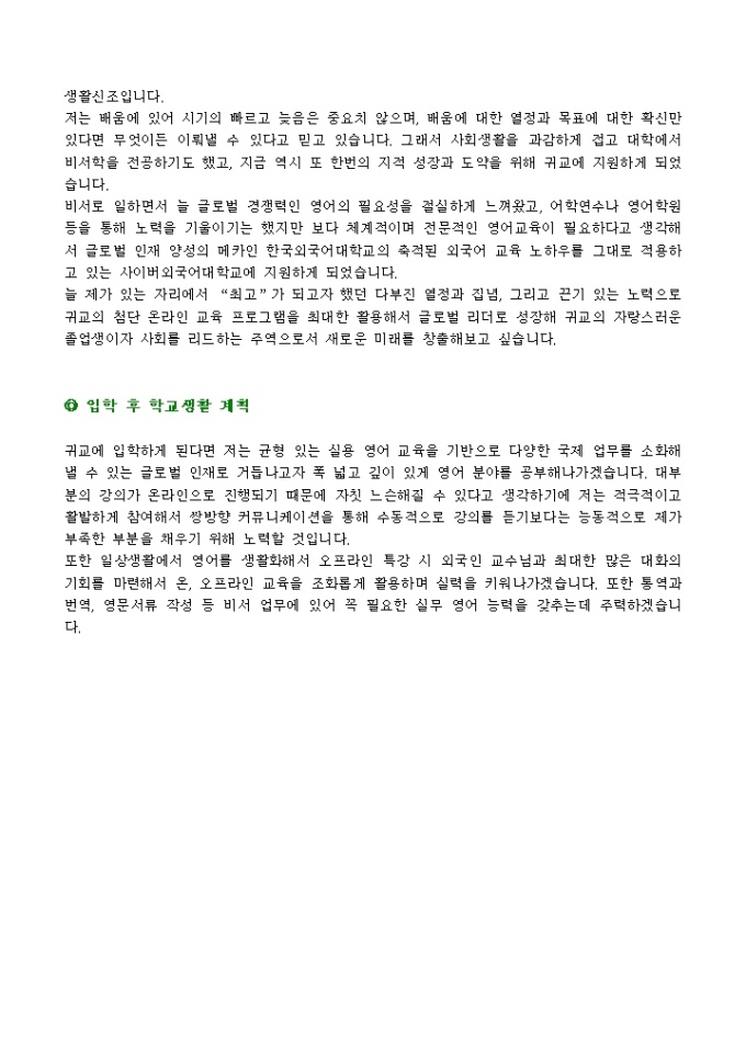 대학자기소개서 학업계획서(사이버외국어대 영어영문학)