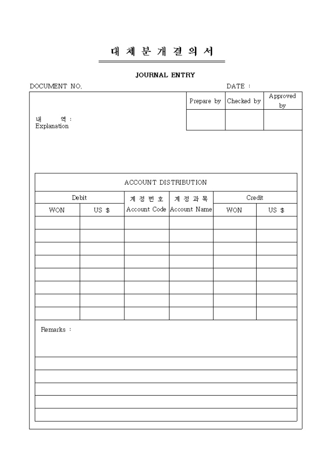 결의 된 거래를 대변(貸邊)과 차변(借邊)으로 기재하는 양식입니다.