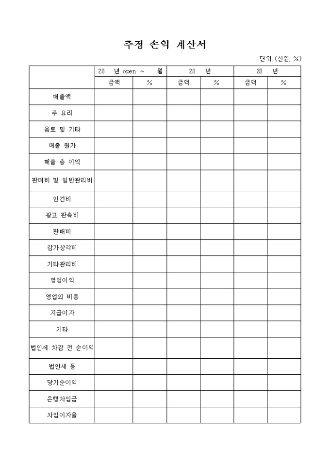 추정 손익계산서(외식업)