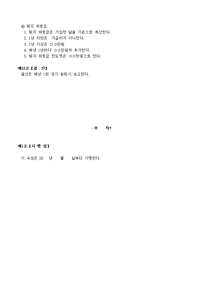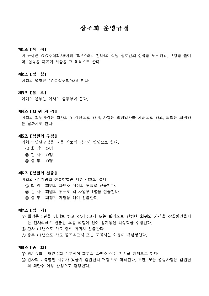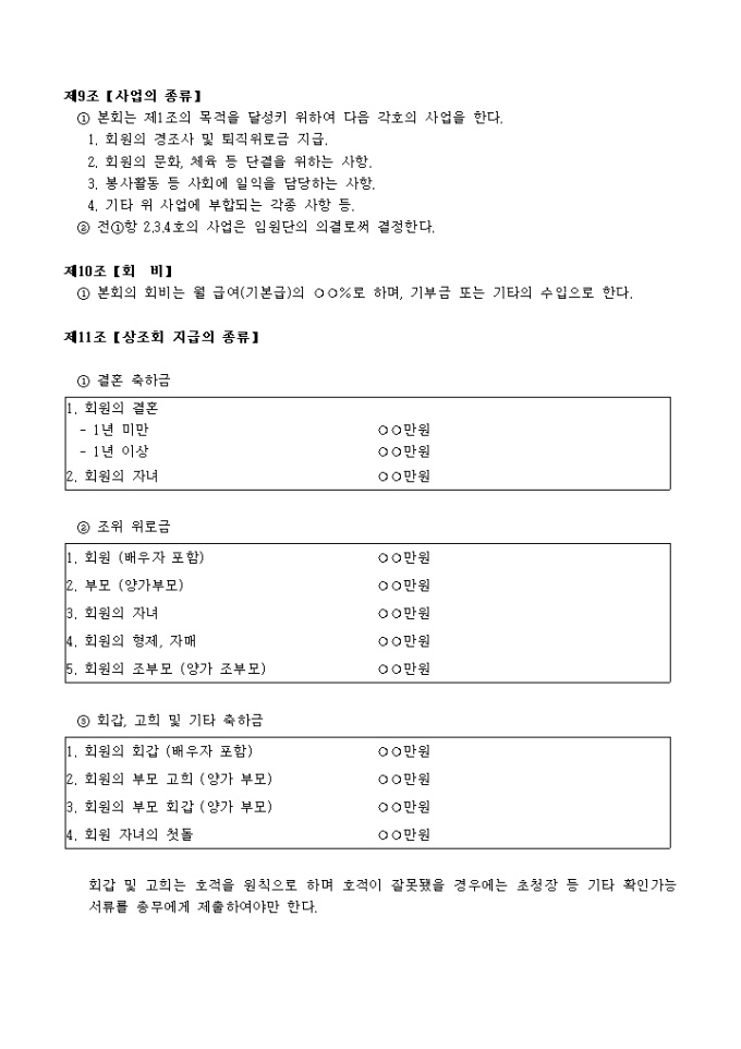 9,000원/월목적, 명칭, 본부, 회원자격 등 12개 조항으로 구성되어있는 상조회회칙입니다.