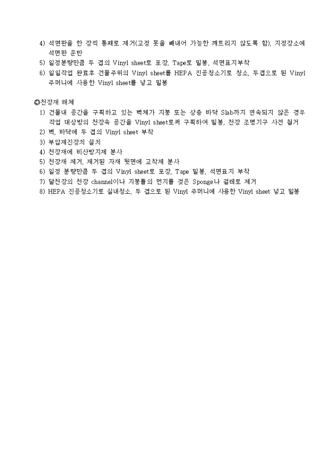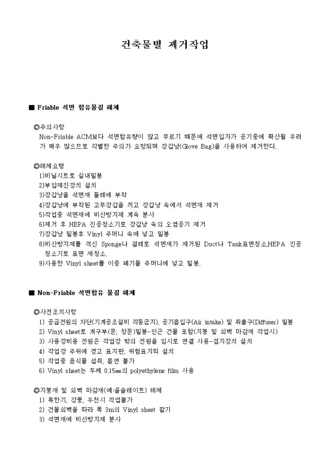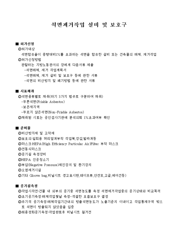 석면제거작업 설비 및 보호구