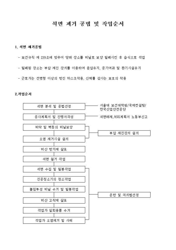 9,000원/월석면 제거 공법 및 작업순서도가 있는 양식입니다.