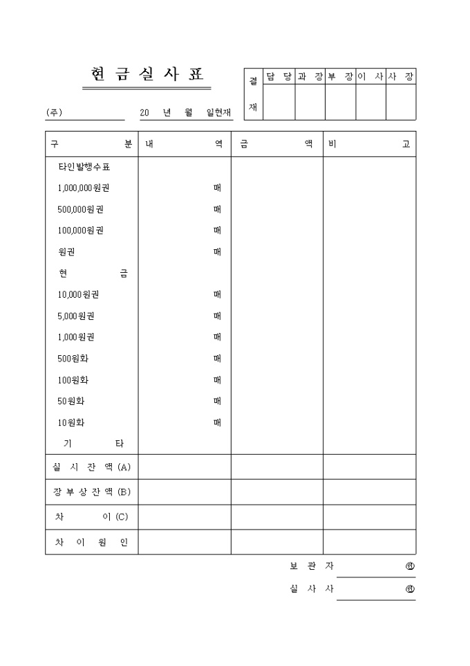 현금실사표
