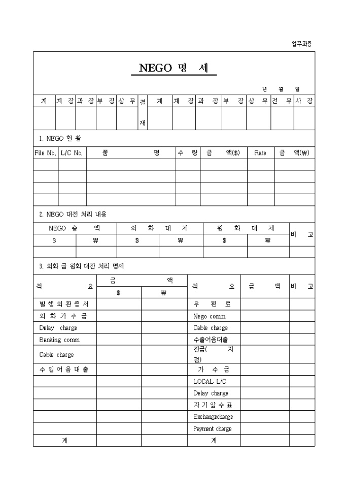 9,000원/월수출대금 회수 명세를 기입하는 양식입니다.